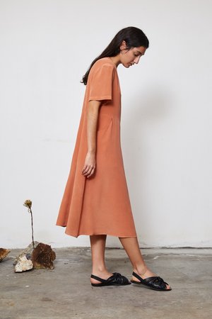Dyed with handmade organic pigments obtained from Loquat leaves. The irregularity of the colour achieved with this artisanal process makes each garment unique and beautiful. This item is PH sensitive. Use a PH neutral soap and store out of direct sunlight. 100% Silk Creppe de Chine.