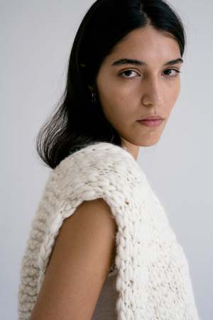 Handcrafted by female artisans in the rural areas of Uruguay from undyed Merino wool - transformed by a manipulation of tension during the spinning process to achieve a wonderfully spongy flam knit. Processed without chemicals, some natural pilling may occur during use. Handle with care to preserve the original look. Limited edition. Can be hand knitted to order. 100% extra-fine Merino wool.