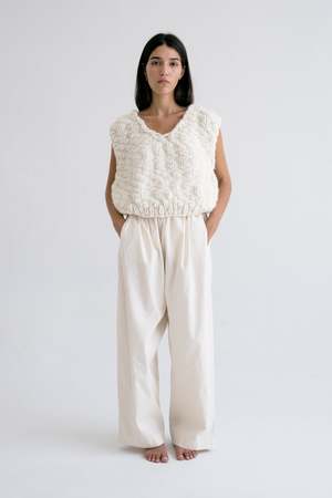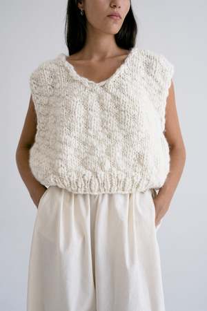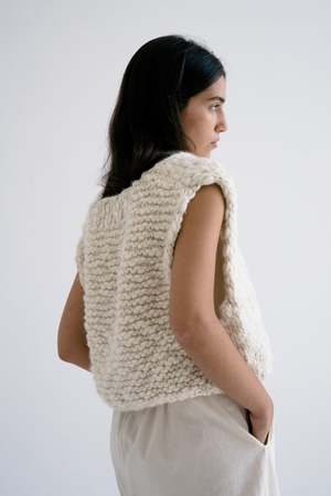 Handcrafted by female artisans in the rural areas of Uruguay from undyed Merino wool - transformed by a manipulation of tension during the spinning process to achieve a wonderfully spongy flam knit. Processed without chemicals, some natural pilling may occur during use. Handle with care to preserve the original look. On pre-order. Estimated delivery time end September 100% extra-fine Merino wool.