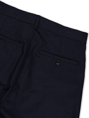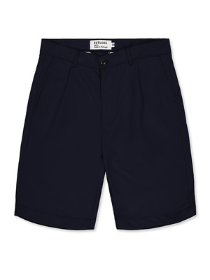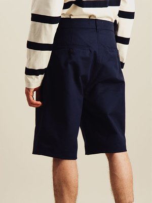 Cotton twill pleated bermuda shorts, two slant pockets on the front and two welt pockets on the back. Zip fly and horn buttons. Wide cut.