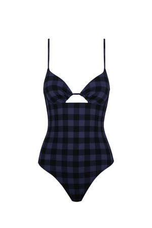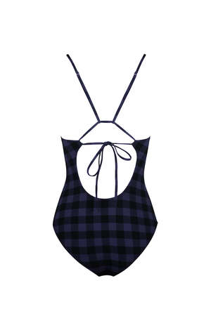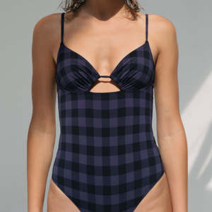 Pale: Vega One Piece - Purple Check A cool, adjustable one piece in a plaid purple check print. Low back, keyhole detail under bust. Medium bum coverage. - 85% Polyamide 15% Elastane - Fully lined - High cut style with medium back coverage - Made in Spain