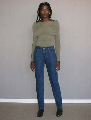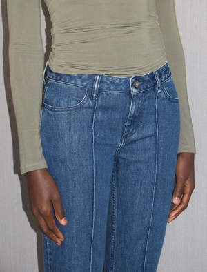 Baltic jeans by Paloma Wool is a low rise, straight leg denim pants with center seam down the front. - Composition: 80% Responsible Cotton 20% Recycled Cotton - Model is 5'9" wearing size 36. - Measurement in 36: Total length: 41.3", Waist: 14.6", Hip: 18.1" - If you are between sizes we recommend you to size up. - Made in Portugal Size Chart (Inches): We measure each item by hand to ensure the best fit. 36 38 40 Waist width 14.6 15.4 16.3 Hip width 18.1 19.7 20.7 Rise 9 9.5 10 Inseam 32 32.5 33Medium Denim