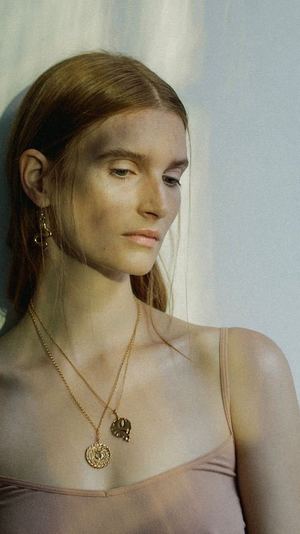 Inspired by the Phaistos Disc, this hand carved Pamela Card coin pendant is designed with roped edges and is covered on both sides with a spiral of stamped symbols - symbols which remain disputed by archaeologists to this day making it one of the most unique mysteries of archaeology. 22 inch. chain length.
