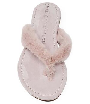 The Ivanka Thong Sandal by Paola Martini is a modern party sandal in light pink. The sandal is comfortable and easy to wear and can be dressed up or down for any occasion. Item Details: - Color: Light Pink - Thong sandal - Composition: Faux fur upper - Composition: Suede lining - Composition: Suede footbed, leather sole - Sole height: 0.75 in / 1.9 cm - Product ID: 948 - Made in Italy.