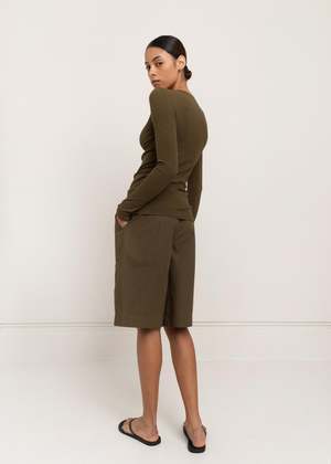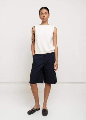 An effortlessly polished take on the classic Bermuda short. The Patrice Short is crafted from 100% organic cotton for a soft, breathable feel youll want to live in all summer long. Inspired by the Sylvie Short, this style features a longer, tailored length with an easy, relaxed fit that reads chic without trying. CARE Machine wash cold with like colours. Do not bleach. Tumble dry low. Cool iron if needed. FABRIC 100% organic cotton FIT Relaxed fit. Model wears size small. Waist: 31" Hip: 42 1/2" Inseam: 11 1/2"