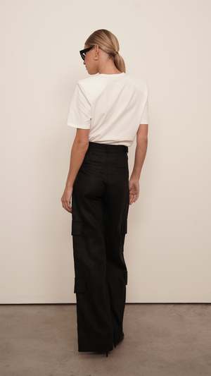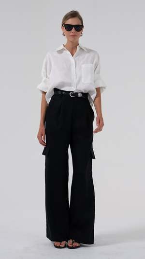 Expertly crafted with 100% linen fabric, the Monica Cargo Linen Pants feature a sleek and adjustable waist strap for a perfect fit. Designed with 6 functional pockets, these pants are perfect for busy individuals on the go. The simple silver hardware adds a touch of sophistication to this practical and versatile piece. 100% linen Measurements (size S): Waist circumference 28"