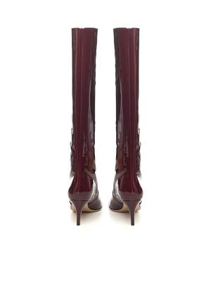 Women > Shoes > Boots Patent leather upper. High heel with 60mm stiletto heel. Made in Italy. Designer color: Pinot Noir.