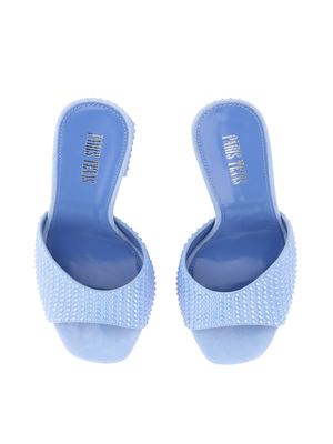 Heel: 10.5 cm. Upper: Suede leather with crystal embellishments.
