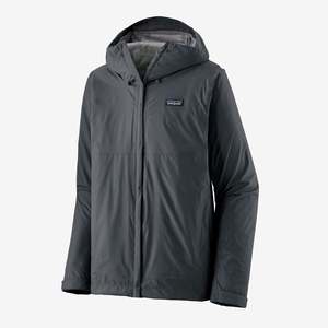 Simple and unpretentious, Patagonia's trusted Torrentshell 3L Jacket uses 3-layer H2No Performance Standard technology for exceptional waterproof/breathable performance, all-day comfort and long-lasting waterproof durability. Fair Trade Certified sewn. Features - 3-layer waterproof/breathable H2No Performance Standard shell provides the highest levels of comfort and performance, and long-term waterproof durability; Fair Trade Certified sewn - Two-way-adjustable hood with a laminated visor rolls down and stows with a simplified cord-and-hook design - Microfleece-lined neck provides comfort and protects with a waterproof/breathable barrier - Snag-free center-front zipper with external and internal storm flaps and zipper-garage chin guard - Two zippered handwarmer pockets and venting pit zips; all with welted exterior storm flaps and DWR (durable water repellent)-treated zippers - Self-fabric hook-and-loop cuff closures and adjustable drawcord hem seal out precipitation - Jacket self-stuffs into left handwarmer pocket with carabiner clip-in loop - 394 g (13.9 oz) Materials H2No Performance Standard shell: 3-layer, 3.3-oz 50-denier ECONYL 100% recycled nylon ripstop face, polycarbonate PU membrane with 13% bio-based content, a tricot backer and a DWR (durable water repellent) finish. Fabric is certified as bluesign approved. Fair Trade Certified sewn