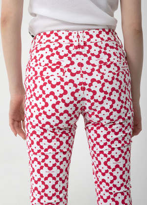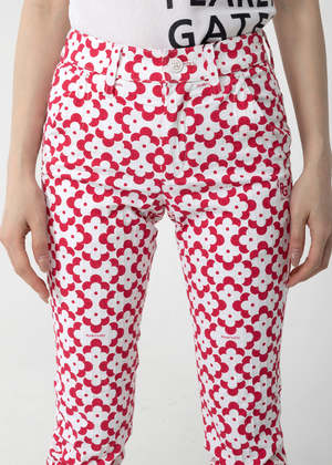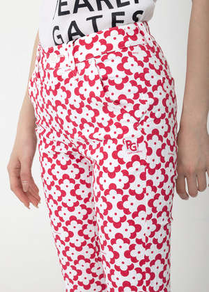 Stretch pants in pink featuring daisy monogram patterns throughout. PG logo2 at front and back 56% Polyester, 41% Cotton, 3% Polyurethane. Made in China.