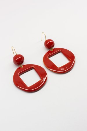 Enameled ceramic earrings and 18k gold-plated silver clasp. Handmade in the Pedrusco workshop in Bilbao, Spain. Specifications: - Length: 6 cm (approx.)