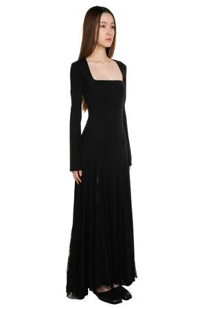 PENG approaches clothing as a quiet expression of the human experience, shaped by nature, time, and the body. Designed by Zhi-Chen Tai (formerly Peng Tai), each piece reflects a considered balance between conceptual design and everyday wearability. Natural elements such as leaves, soil, and organic textures inform the materials and silhouettes, resulting in garments that feel thoughtful, tactile, and timeless. Peng black dress in wool. Long sleeves with lace detail at the opening. Soft and light wool fabric with a slight stretch. Colour: Black. Composition: Wool.