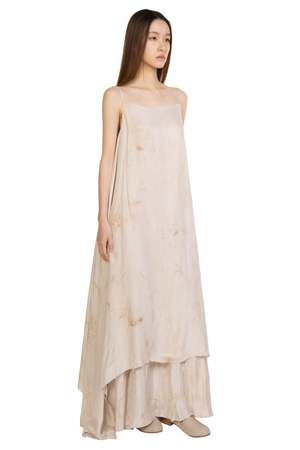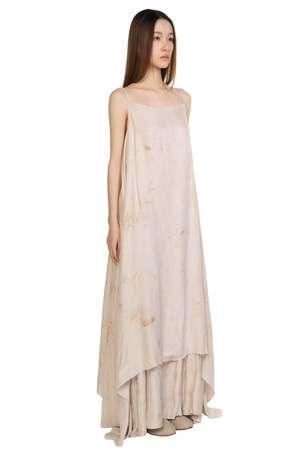 PENG approaches clothing as a quiet expression of the human experience, shaped by nature, time, and the body. Designed by Zhi-Chen Tai (formerly Peng Tai), each piece reflects a considered balance between conceptual design and everyday wearability. This Random Color Cupro Silk Dress is sleeveless with spaghetti straps and a layered design to create volume. It is crafted from a soft, lightweight cupro silk fabric with the brands signature random color effect throughout. Colour: Random. Composition: Cupro silk.