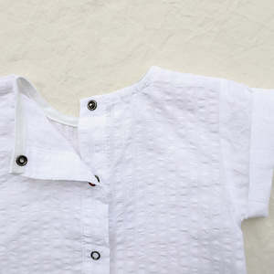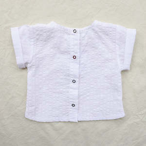 Pequeno Tocon - or "the smallest in the house" in Spanish - is a small family brand for newborn to 2 years. This Barcelona based company uses fine cotton fabrics to create stunning baby clothing with a whimsical and timeless feel. - Airy cotton seersucker t-shirt - Snap button closure down the back - Short sleeves with rolled cuff 100% Cotton Hand wash and lay flat to dry. Do not tumble dry, bleach, or iron. 9003