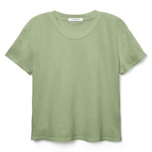 soft. season-less. classic. the perfect, slightly-oversized crew neck tee. its sexy, but not too sexy. the essential staple piece you will want to live in. hits just below mid-rise denim. we curated the perfect hues for any wardrobe. get a few, they will be forever your favorite. mindfully made in california. material and care 100% crisp cotton all colors except heather grey - 50% Polyester, 38% Cotton and 12% Rayon hand wash cold. lay flat to dry. specs model is wearing a size s model height: 5'9" bust: 34" hips: 36" xs: chest 18.5 in; length 20.5 in s: chest 19.5 in; length 21 in m: chest 20.5 in; length 21.5 in l: chest 22.5 in; length 22 in xl: chest 22.5 in; length 22.5 in