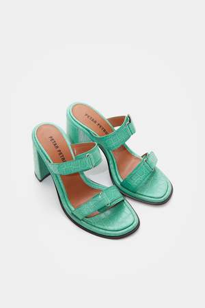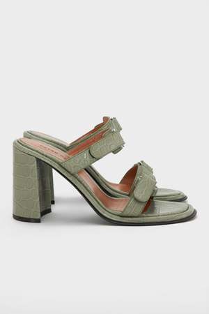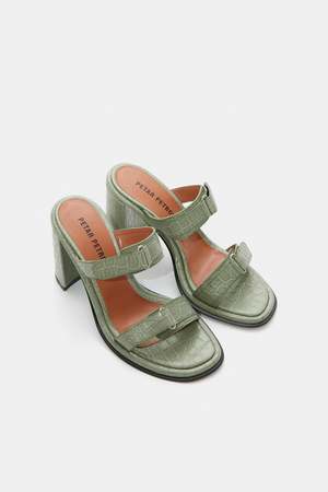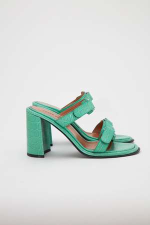 BLOCK HEEL STRAP MULES - EUCALYPTUS