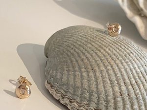 Little 14 karat gold nuggets with a tiny conflict free diamond.