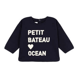Petit Bateau, established over 120 years ago by Pierre Valton in Troyes, is one of the most established children's brands. Currently designed by Kitsune, Petit Bateau has grown beyond its tradition of knickers and underwear and has created a full collectsion ranging from newborn to adult. - Soft fleece sweatshirt - Petit Bateau loves the ocean print on the front - Back snap button for easy opening and dressing - Long sleeves 100% Cotton Machine wash up to 30C. Do not tumble dry, bleach or dry clean.