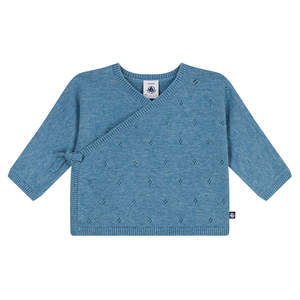 Openwork knit cardigan in a wrap style with tie closure at the sides. Features ribbed knit trim and long sleeves. 55% Wool, 45% Cotton Machine wash up to 30C. Do not tumble dry, bleach or dry clean. Style number: A0EC202.
