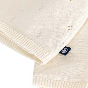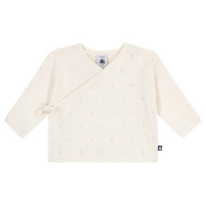 Openwork knit baby cardigan in a wrap style with tie closure at the sides. - Openwork knit cardigan - Wrap style with tie closure at the sides - Ribbed knit trim - Long sleeves 55% Wool, 45% Cotton Machine wash up to 30C. Do not tumble dry, bleach or dry clean. A0EC203 Type: Sweaters