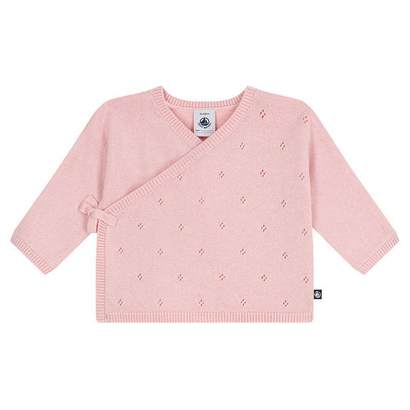 Petit Bateau, established over 120 years ago by Pierre Valton in Troyes, is one of the most established children's brands. Currently designed by Kitsune, Petit Bateau has grown beyond its tradition of knickers and underwear and has created a full collectsion ranging from newborn to adult. - Openwork knit cardigan - Wrap style with tie closure at the sides - Ribbed knit trim - Long sleeves 55% Wool, 45% Cotton Machine wash up to 30C. Do not tumble dry, bleach or dry clean. A0EC201 Type: Sweaters