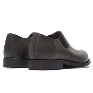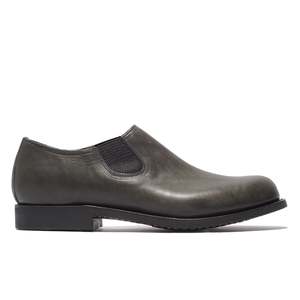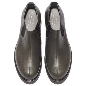 A new collaboration between Phigvel and Lady White Co., the Split Seam Shoe is a slip-on cut-off Chelsea-style boot with a rounded toe, bench-made in Asakusa, Japan from 100% Italian young calfskin leather tanned by Guidi in Tuscany and saturated with oil for a refined, dense, soft hand. Defined by its clean center split seam running from toe to tongue, it sits between a boot and a shoesubdued yet robustwith a side-gore entry, Goodyear welt, and rubber sole. The leather lining stops at the heel to create subtle abrasion that helps prevent heel slip. Charcoal is an original dye developed specifically for this collaboration, and the leather will soften, deepen, and gain luster over time. - Calfskin leather - Side gore construction - Goodyear-welted - Rubber sole - Made in Japan Sizing: - We suggest you to go with your usual leather shoes size.