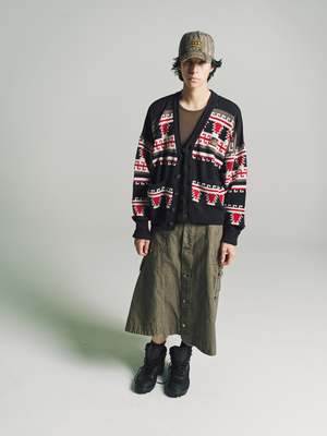 Embrace cozy sophistication with our Nordic Cardigan. This boxy oversized fit cardigan features Scandinavian-style intarsia, showcasing exquisite craftsmanship. Crafted from rustic lambswool, it offers both warmth and style. The logo2 horn buttons complete the heritage look. Wool Model wears Size