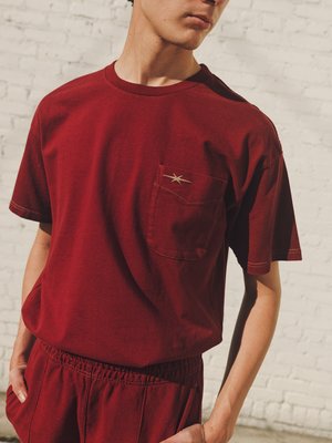 The Classic pocket t-shirt is made of organic cotton jersey with a sturdy, heavy-weight structure that holds its shape over time Each item is garment dyed, adding subtle variations of colours to its heather base. This new staple of the Phipps wardrobe has a boxy fit and a patch pocket on its chest, finished this season with a subtle western stitch in contrasting ecru thread. Organic Cotton Model wears a Size Medium