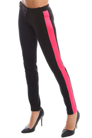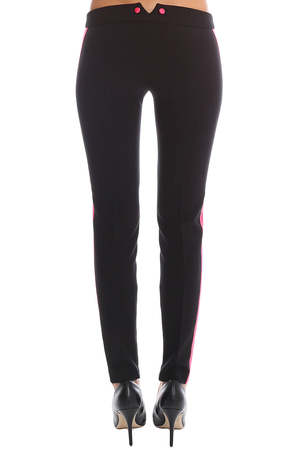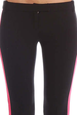Make a loud statement in Pierre Balmain's classic trouser pant. This classic trouser silhouette features a bold fuchsia stripe detail on both legs with adjustable side zippers, to ensure comfort. Complete the chic city look with a fitted, black blouse and black stiletto heels. - Color: Black/Fuschia - Fabric: 65% Polyester 32% Viscose 3% Elastane - Style #: A314 - Made in Slovakia - Dry Clean Only * Model is 5'9" wearing a size 38 Productcode BALMAINWF5-27 Designer PIERRE BALMAIN