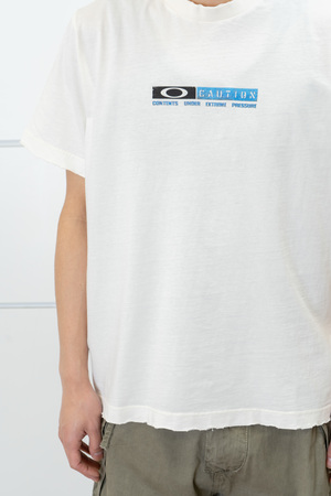 Made from 100% cotton jersey at 180 GSM with a pre-shrunk finish that helps maintain shape through wear and washes. Designed with a regular fit and a clean 2.5 cm neckline that sits close without feeling tight. Shoulder seams are fitted to keep the upper profile sharp. Front and back feature printed graphics, while the collar, hem, and sleeves include soft distressing that reveals subtle texture along the edges. The fabric surface holds a natural weight that feels substantial but easy enough for daily use. Composition: 100% cotton. Sizing Model is 59 / 125 lbs, wearing size M. S M L XL 1/2 Chest: 53 55 57 59 Sleeve: 21.5 22.5 23.5 24.5 Length: 64.5 65.5 67.5 68.5 *Measurements are in cm. Manual measurement may result in a 12 cm margin of error.