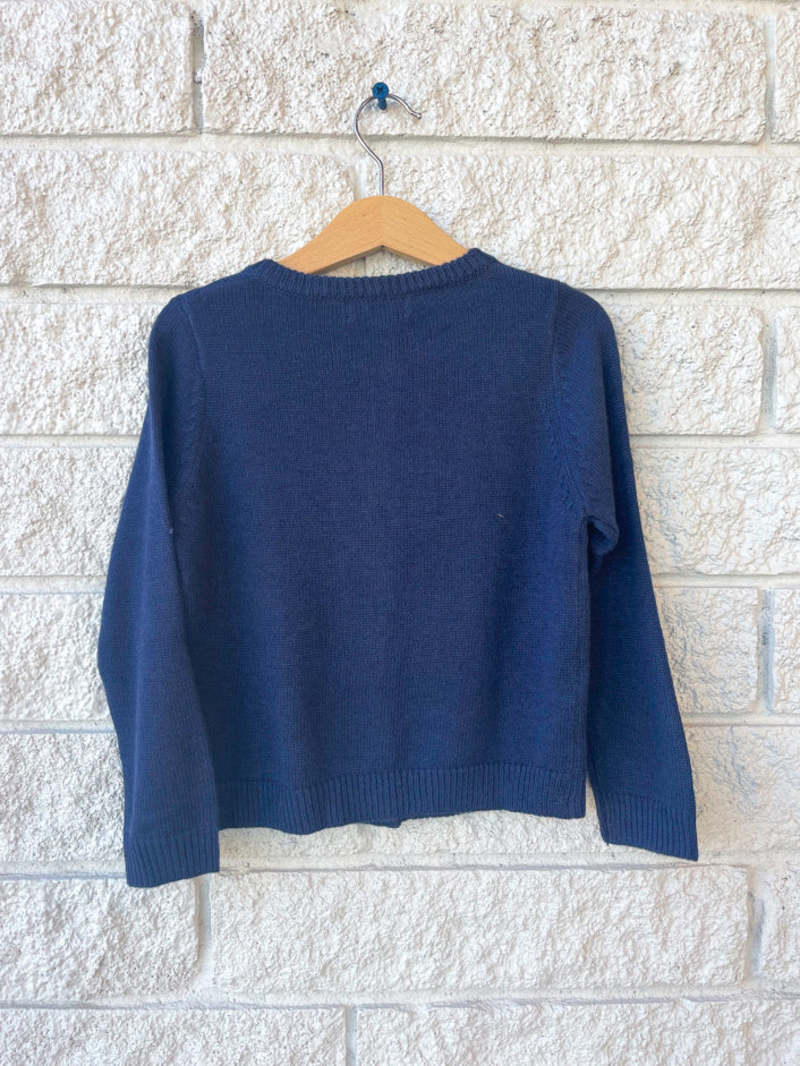 This long sleeve sweater has a depiction of Santa on the front making it perfect for the holidays. The kids sweater can easily pair with pants or a festive skirt. The easy to wear sweater is great to dress up or down around the holidays.