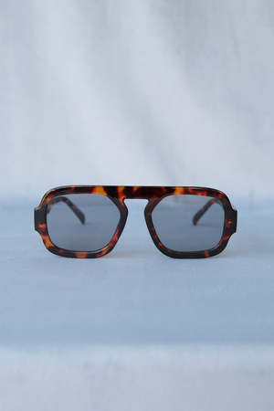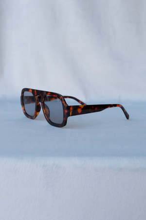 Veda thick squared off, aviator sunglasses in tortoise frames with black lens.