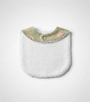 Crafted from pure linen and finished with a soft cotton chenille backing, the Layette Linen Bib, Hedgerow Floral is designed to feel both practical and enduring. The gently contoured silhouette offers generous coverage while remaining lightweight and breathable, making it ideal for everyday wear during early meals and milestones. The linen exterior features the Hedgerow Floral print, a quiet botanical pattern inspired by wild garden edges and soft seasonal blooms. A single snap closure at the neck allows for easy fastening and removal, while the absorbent backing provides comfort against delicate skin. Each bib is carefully sewn for durability, intended to be washed, loved, and kept as a small keepsake once it is no longer needed. Size: One size (approximately 318 months) Fabric Front: 100% Linen Back: 100% Cotton Chenille