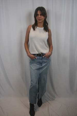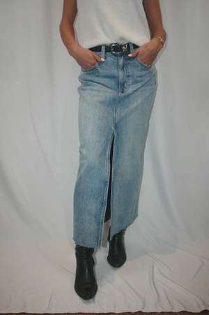 Our best-selling denim skirt. Crafted from rigid, non-stretch denim for a sophisticated fit and drape, with a considered front slit for ease of movement. Brooklyn is a clean, light-wash denim with a touch of vintage-inspired fading. - 100% Cotton - Imported