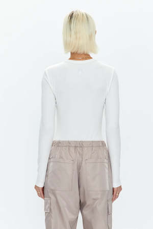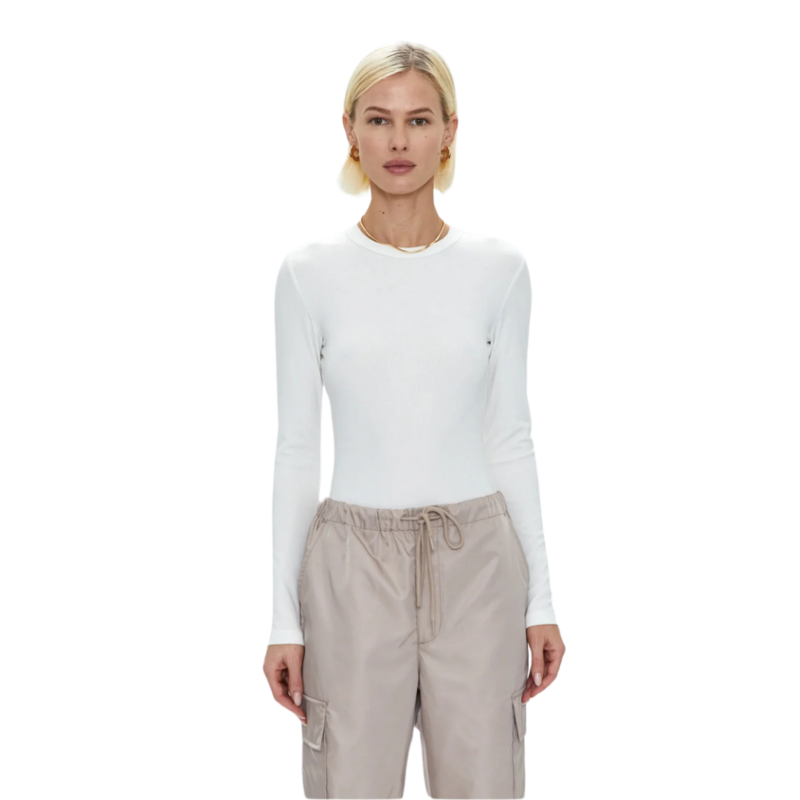 A top that everyone should have in their wardrobe. Featuring a classic crewneck style with ribbed material to create a form fitting look. Due to its thong cut, the garment eliminates visible lines, and it also has a snap closure to make it easy to put on and take off. - 90% Lyocell / 10% Spandex - Model is wearing size small