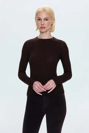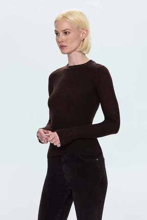 The Juno Sweater by Pistola offers lightweight luxury with a timeless, relaxed silhouette for understated elegance. Its mocha color brings warm sophistication with a rich brown tone perfect for autumn looks. Crafted from premium knit, it's thick enough to wear alone and light enough for layering. Details: - Fitted cut - Crew neck - Ribbed texture - Length: 21.5" / 54.5 cm - Color: Mocha - True to size; size up for a more relaxed fit - Model is 5'9" and wears size S - 60% Merino Wool, 40% PVA - Cold wash