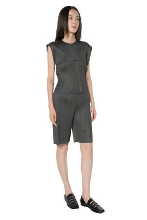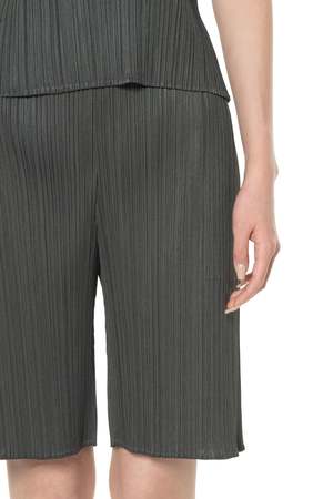 Pleats Please by Issey Miyake Monthly Colors June Shorts are crafted from a single thread, with creases added after sewing to offer convenience, comfort, and a strong silhouette. These charcoal grey pleated shorts feature a relaxed fit, an elasticated waistband, and side pockets. Colour: Charcoal Grey. Composition: Polyester. Code: PP56JF1630603