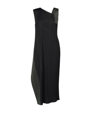 This sleeveless dress is inspired by the pointe technique, in which dancers stand on their tiptoes in pointe shoes. The shoulder straps hang diagonally when worn, creating a beautiful silhouette. It is characterized by the striking difference in its look between when it is worn and laid flat. Pleats Please pieces are lightweight, easy to layer, anti-static, and never wrinkle. Made in Japan. Each Pleats Please garment fits standard sizes 0-18. Select your size based on length: Pleats Please garments have a unique size scale that is based on the garment length. Due to the garment pleating technique which provides great stretch and comfort, there is only a minor change in the garment width between sizes and you should select your size based on length only. On average, the difference in length between sizes is approximately 1-2" in length and slight variations in arm hole openings.