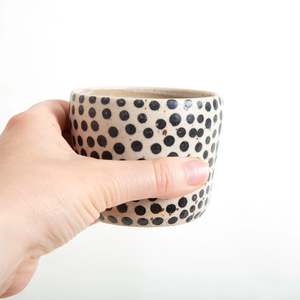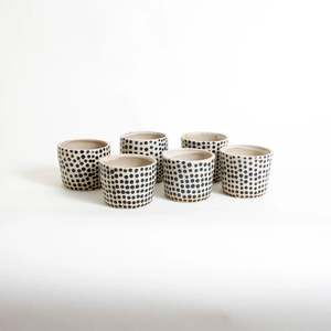 Black and white rustic tumblers, cups or planters are unique pottery pieces, made by me. Cups are one of kind vessel, I have made recently. The beakers are wheel thrown in a professional pottery studio in Denmark, Malling. You can use the cups for tea or coffee! All cups are handmade, one of kind items and can vary in size and also in form. Size: H: 3.1 inches (8 cm), 3.1 inches (8 cm). Fits 200 ml, 7 oz fluid. Dish washer, microwave safe. Normal making time 3-4 weeks, ask me, if I have cups available and can ship cups out right away.