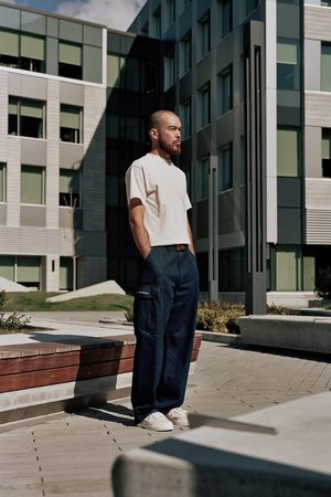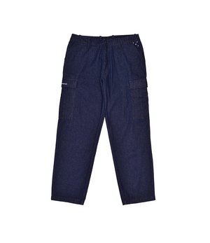 100% rinsed denim Straight loose fit Tonal stitching Zip closure Pop logo2 on coin pocket Script logo2 on side pocket Made in Portugal