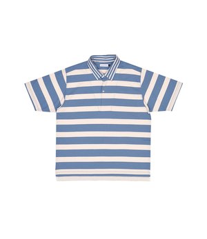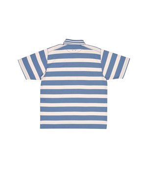 100% heavyweight cotton Vintage polo shirt cut Custom stripe Seam stitched details on front Striped collar Pearl white buttons White script logo2 on left side White Pop logo2 at back neck Side split uneven hem Made in Portugal