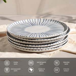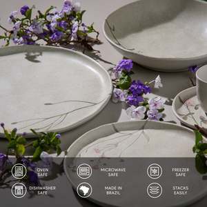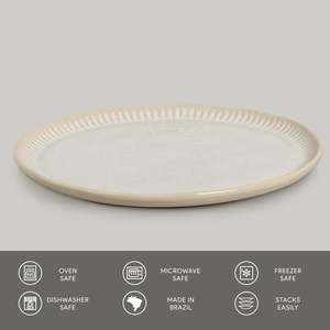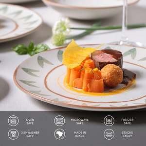 Porto Brasil dinner plates are crafted with process excellence and state-of-the-art technology for superior quality, durability, and strength. They offer high resistance to scratches, stains, and chipping, and have water absorption close to zero to reduce cracking. Safe for use in microwaves, dishwashers, and freezers when handled according to specifications. Food safe and compliant with major global regulatory standards.