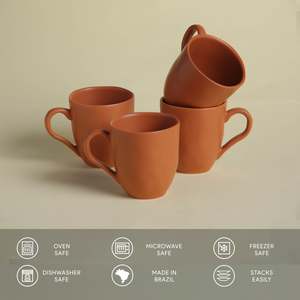 This set of four Organic Mugs by Porto Brasil features superior quality, durability, and strength. The mugs are highly resistant to scratches, stains, and chipping, with water absorption close to zero to reduce the chance of cracking. They are safe for use in microwaves, dishwashers, and freezers when handled according to specifications.
