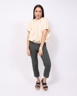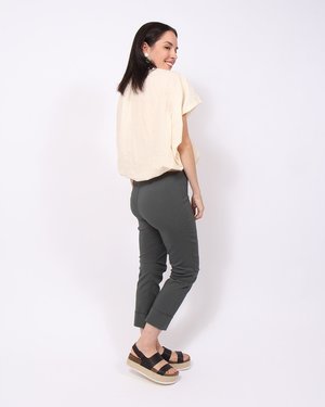 These chic, comfy cropped pants are super popular and will become your go-to basics. Front zip with a slim cuffed leg, pleated at the knee. Ours are in Patina. Porto's sturdy stretch twill is perfect for year round wear! This new version of Vespa features an elastic "gripper" inset at the inside waist to keep the pants firmly in place. - Fit note: These pants are super-stretchy. The measurements below were taken with the pants lying flat and should be taken as the minimum measurement. Each size has a good 4 inches of stretch; because of this, customers opt to size down in the Vespa pant. - Size 0 / XS: waist, 25 inches; hip, 31 inches; inseam, 24.25 inches; rise, 8.5 inches. - Size 1 / S: waist, 27 inches; hip, 33 inches; inseam, 25.5 inches; rise, 9 inches. - Size 2 / M: waist, 29.5 inches; hip, 35 inches; inseam, 25.5 inches; rise, 9.5 inches. - Size 3 / L: waist, 31.5 inches; hip, 37 inches; inseam, 26 inches; rise, 10 inches. - 75 percent viscose, 21 percent nylon, 4 percent Lycra. - Machine wash, cold; hang to dry. - Made in San Francisco.