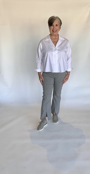The cutest ankle length pants are made from Porto's stretch twill fabric, which provides comfort, breathability and durability. They feature a slim fit with a slit on front of the ankle, and finished with a hidden front zipper. Perfect for work, travel or casual wear and are the latest pant style addition to our popular Porto collectsion. Available in Khaki. Measurements Hips: XS 33", S 35", M 37", L 39", XL 41" Length: XS 38", S 39", M 40", L 41", XL 42" Inseam- XS 28.5", S 29", M 29.5", L 30", XL 30.5" Front Rise: XS 8.5", S 9.5", M 10", L 10.5", XL 11" Back Rise: XS 15", S 16", M 16.5", L 17.5", XL 18" Fabric & Care 75% Viscose, 21% Nylon, 4% Lycra Machine wash cold. Line dry. Do not iron. Made in San Francisco.