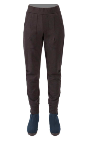 The Porto Fan Club pant is made from a thicker weight ponte knit and features a knit waistband, two front pockets and a tapered leg with horizontal seams. It is a cross between the Tomba pant and a jogger. Perfect pant when you need a narrower pant silhouette but desire the comfort of a jogger.