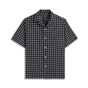 This short sleeve Portuguese Flannel shirt is made from textured cotton contrasted with an embroidered pattern throughout. 100% cotton Mother of pearl buttons Made in Portugal.