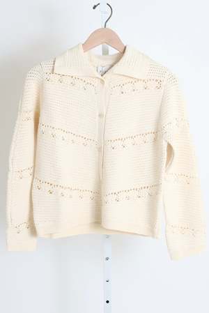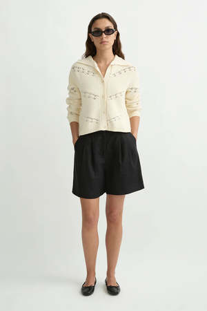The Dylan Cardigan features a soft open collar and hand-crocheted detailing through the body. Crafted in a soft knit, it is finished with tonal buttons and fine rib trims. Pair yours with the Dylan Shorts. 72% Viscose, 28% Polyester.