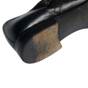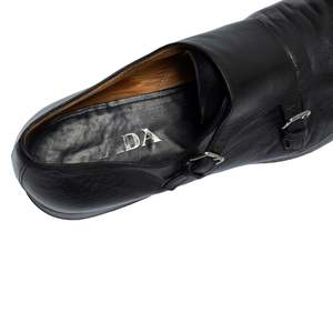 Chrome-tanned full-grain calf, sculpted chisel last, and clean cap toePradas monk shoe channels 2000s revivalism into a shoe of postmodern elegance and structural exactitude. Pradas double monk strap exemplifies the brands Milanese origin and its evolution from a 1913 leather atelier into one of the worlds most revered arbiters of luxury fashion. Rooted in intellectual minimalism and architectural control, the design demonstrates Pradas disciplined approach to modern tailoring, where classic forms are subtly reconfigured through ergonomic geometry and proportionally nuanced details. The softly rounded chisel last, seamless vamp curvature, and low-set buckle placement reflect a discreet subversion of orthodoxyretaining formal integrity while inviting a distinctly postmodern, cosmopolitan elegance. Long recognized for its influential interventions in 1990s and 2000s footwearparticularly within techno-luxury and minimalist formalityPrada has consistently straddled the line between mass industrial precision and artisanal intent. This pair reinforces that dual legacy: while not hand-welted in the English or Hungarian tradition, its construction quality, material refinement, and design language operate several tiers above typical fashion house output. The monk strap itself, having experienced a revival within early-2000s tailoring circles, has been consistently refined by Prada into a symbol of urbane restraintworn equally across high fashion runways and the wardrobes of discerning executives. The shoes classification as a double monk strap is defined by its dual side buckle closures and absence of lacing, with a softly contoured cap toe bridging formality and wearability. The quarters are uninterrupted by facings, and the vamp curves into the buckles with architectural smoothness, enhancing visual length and eliminating ornamental clutter. The result is a shoe positioned for versatility across formal, semi-formal, and tailored casual environmentspairing as naturally with slim wool trousers as with contemporary suiting. Its upper is constructed from full-grain Italian calfskin finished in a semi-aniline coat that maintains the hides natural character. The subtle sheen is derived not from wax layering or artificial glossing but from the materials inherent oil content and tight fiber structure. Chrome-tanned and lightly topcoated, the leather exhibits natural creasing patterns and grain topographytestament to its minimal correction and careful selection. This upper promises graceful aging, tonal evolution, and anatomical conformity with repeated wear, underscoring Pradas mastery in balancing resilience with elegance. The last is softly sculpted with a rounded chisel toe, avoiding both sharp angularity and excessive bulbousness. Its waist narrows with a natural taper, providing mild midfoot support, while the vamp depth allows for comfortable flexion without gaping. The heel cup is gently contoured for containment and structure, neither aggressively padded nor underbuilt. Collectively, the last design emphasizes anatomical neutralitywearable sophistication over sculptural extremity. Blake-stitched construction affirms the shoes Italian pedigree, yielding a low-profile sole that supports increased foot articulation and lightness. The outsole is stitched directly through the leather insole and lining into the upper, allowing for minimal weight and sleek silhouette, though with reduced water resistance and resoling capacity compared to Goodyear-welted counterparts. The stitching channel on the outsole is clean and subtly recessed, indicating machine-aided precision within artisanal tolerances. The outsole itself is vegetable-tanned leather, sanded for texture and finished with a modest topcoat to balance traction and breathability. The heel stack comprises layered leather with a rubber top lift branded PRADA, offering a functional mix of shock absorption and wear resistance. There is no fiddleback shaping or waist beveling, confirming the shoes intent as a city-suited formal staple rather than a showcase of benchmade flair. The heel pitch is subtly forward-leaning, enhancing natural gait progression without compromising stability. Internally, the insole is covered in smooth full-grain calf, with limited foam interlayers to preserve interior sleekness. The lining, a naturally tanned vegetable calf, is breathable and antimicrobialsuperior to synthetic alternatives in regulating temperature and moisture. Heel counter padding is minimal but strategic, affording step-in comfort without bulk. No fiberboard or synthetic components disrupt the organic consistency of interior materials, contributing to longevity and internal hygiene. The stitching throughout the upper is tight, uniform, and consistently spaced at approximately 8 SPI. Cap toe alignment is exacting, and seam placements are symmetrical across the left and right shoes. The topline piping is executed with precise wheeling, and strap reinforcements are stitched with calibrated tension to endure stress at buckle anchor points. Edge finishing exhibits clean folding and stitch-downno raw cuts or machine overrunreinforcing the integrity of construction. Quarters are fashioned from a single leather panel that merges fluidly into the buckle straps, producing an uninterrupted surface across the medial and lateral axes. The vamp, largely unbroken save for the cap toe seam, elongates the visual plane and projects subtle formality. Seam allowances are tightly trimmed, and the grain is methodically aligned between panels, ensuring a consistent reflectivity and finish under varied lighting. This level of pattern matching is indicative of precision in both hide selection and upper assembly. The toe cap is lightly structured with celastic or compressed leatherboardproviding silhouette definition without rigidity. The flexibility of the toe box confirms minimal reinforcement, aligning with the shoes emphasis on comfort and natural break-in. The form holds under 
