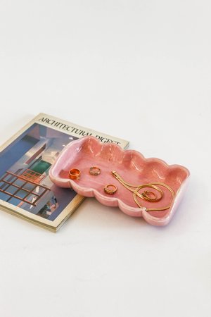 Glazed ceramic tray in wavey shape. Perfect catchall for jewelry and trinkets. Condition - Excellent Minimal signs of wear and no major flaws to note.
